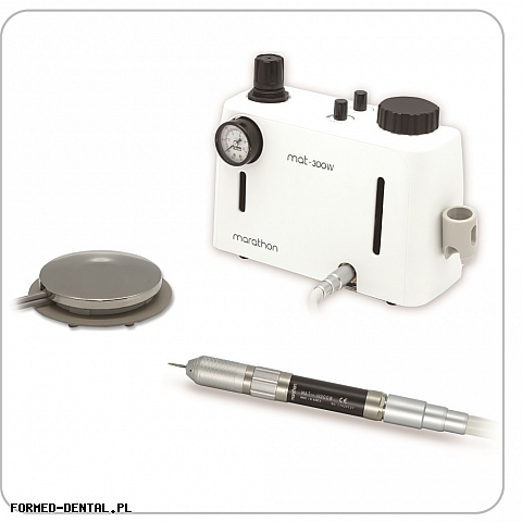 Zestaw Marathon MAT-300W służy do precyzyjnej obróbki porcelany. Oferta skierowana głównie do protetyków, szczególnie pomocny przy wykonywaniu precyzyjnych, ceramicznych prac. Mechanizm przeciwpyłowy zapobiega przedostawaniu się pozostałości do prostnicy, przez co zwiększa się trwałość turbiny. Chłodzenie wodne zmniejsza tworzenie się ciepła na opracowywanym materiale i zapobiega w ten sposób odpryskiwaniu gorących cząstek.