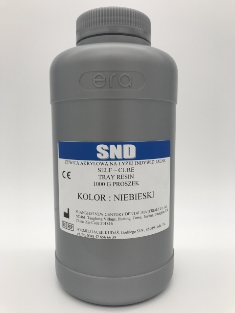 Proszek samopolimeryzujący przeznaczony do wykonywania indywidualnych łyżek wyciskowych. Kolor niebieski, 1000 G.